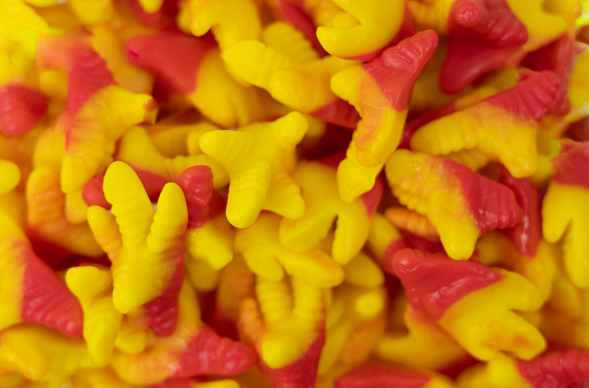 Ingredients: Sugar, gelling agent: gelatin, modified corn starch, acidulant: citric acid, corn starch, gelling agent: pectin, artificial and natural flavors, glazing agent: vegetable oil (coconut, palm and palm kernel oils), carnauba wax, beeswax, artificial colors (Yellow 5, Red 40, titanium dioxide).