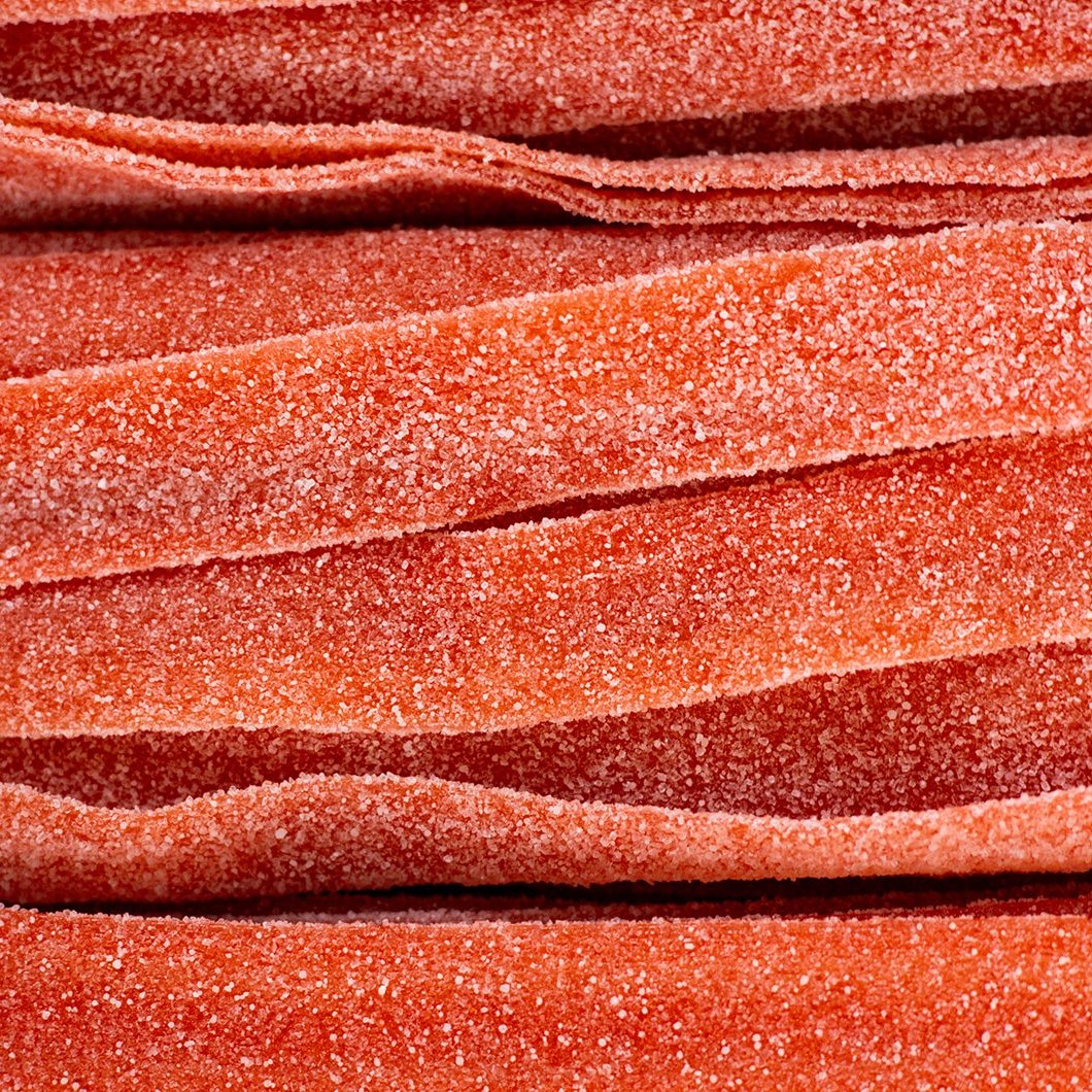 Strawberry flavored gummy belts with a sour sugar coating. Unwrapped in a tub of 200 pieces!